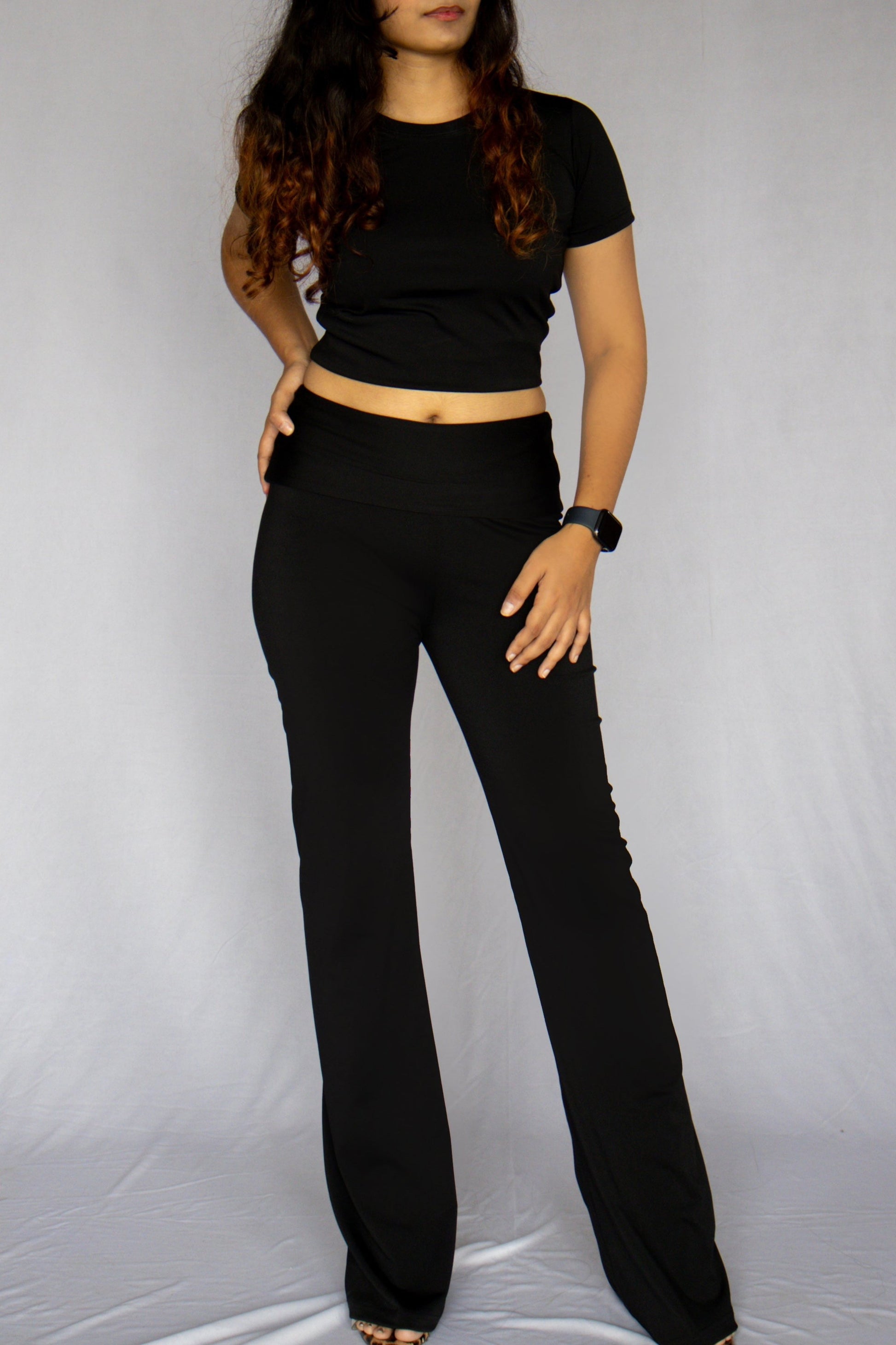 Sculpting Lounge Multiway Fold Waist Flared Trousers - Shadow Black
